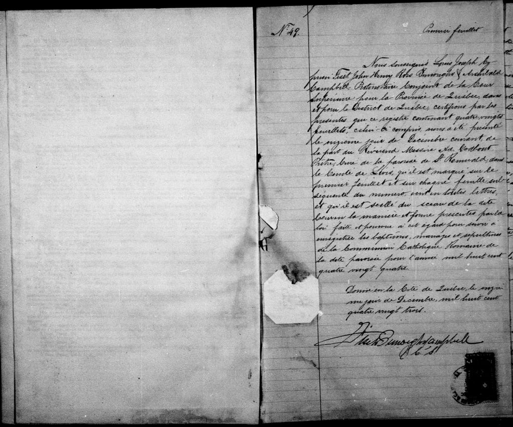 Saint-Romuald-d'Etchemin, 1854-1922, Archives nationales à Québec, Fonds Cour supérieure. District judiciaire de Québec. État civil, (03Q,CE301,S54).
