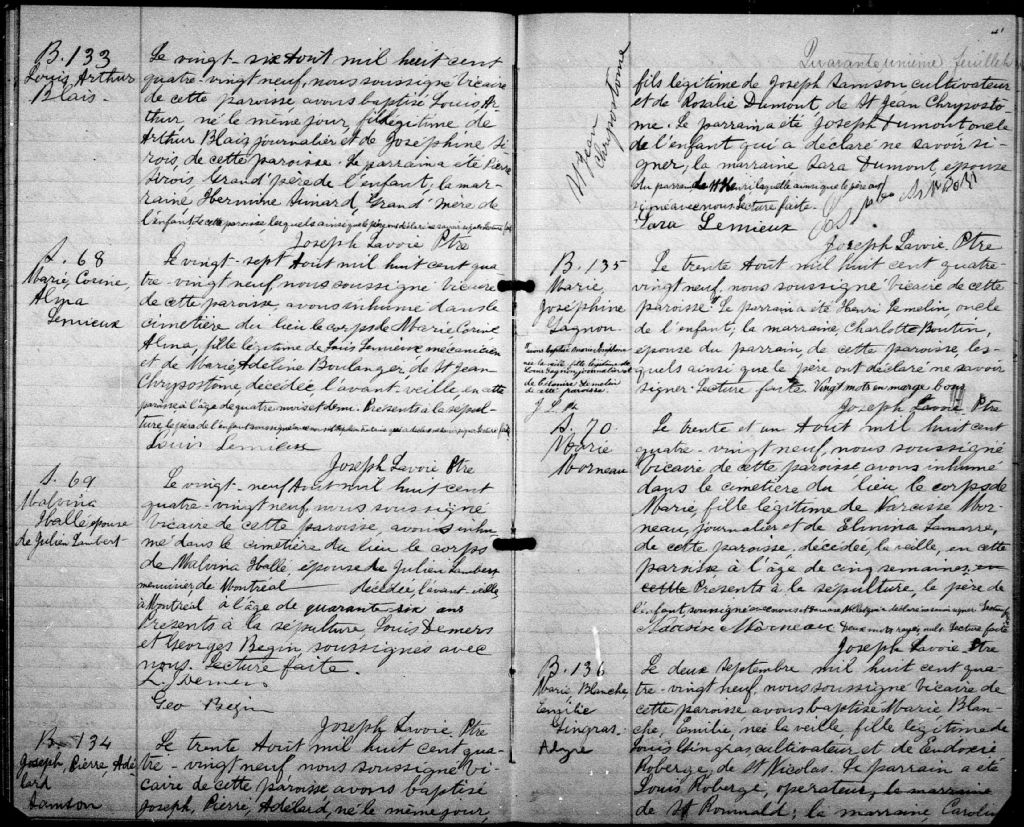 Saint-Romuald-d'Etchemin, 1854-1922, Archives nationales à Québec, Fonds Cour supérieure. District judiciaire de Québec. État civil, (03Q,CE301,S54).