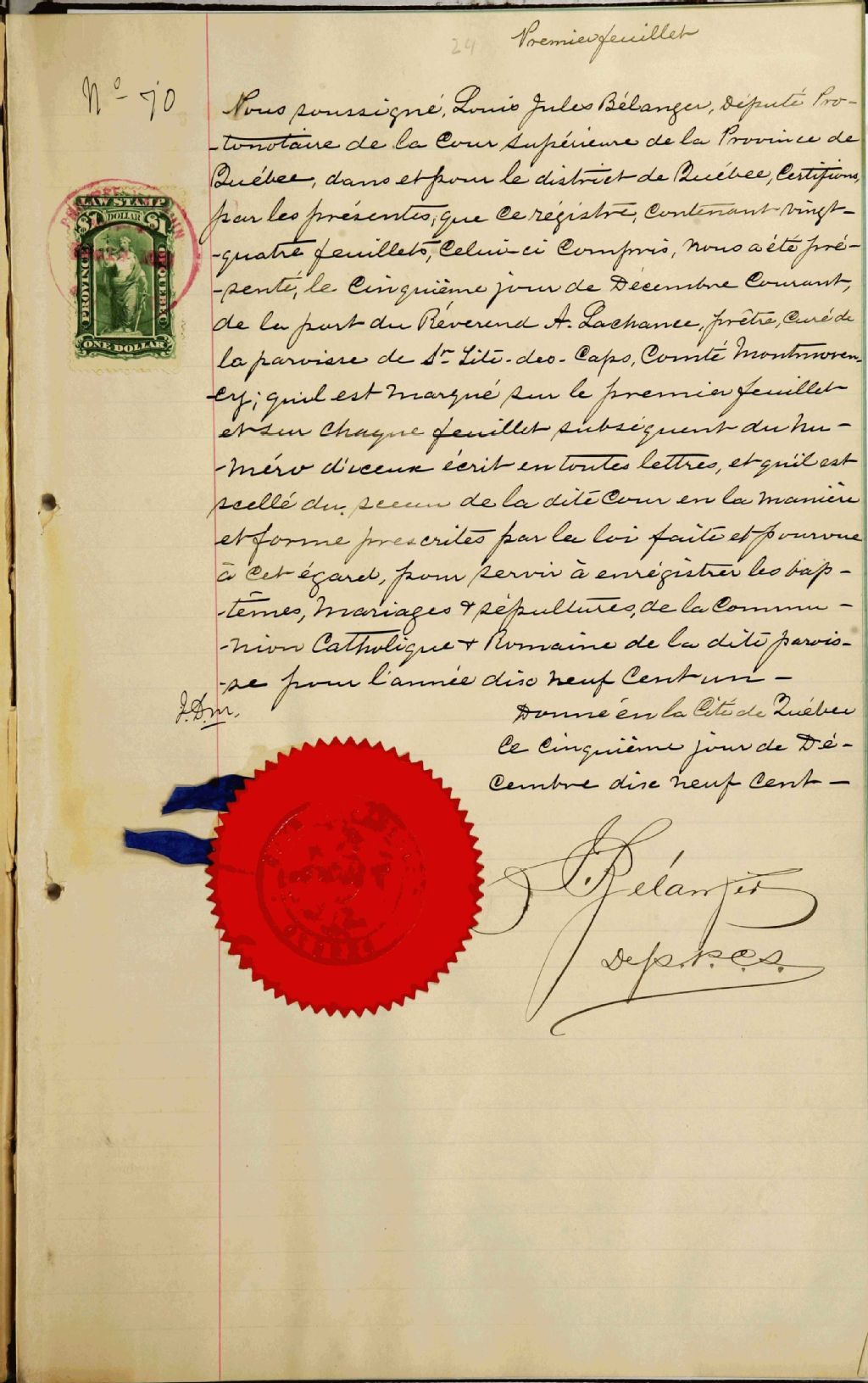 Saint-Tite-des-Caps, 1867-1922, Archives nationales à Québec, Fonds Cour supérieure. District judiciaire de Québec. État civil, (03Q,CE301,S56).