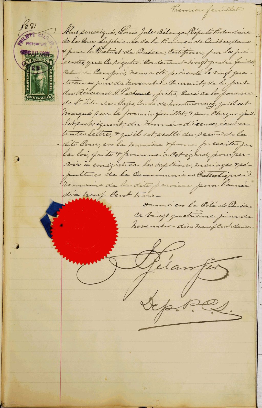 Saint-Tite-des-Caps, 1867-1922, Archives nationales à Québec, Fonds Cour supérieure. District judiciaire de Québec. État civil, (03Q,CE301,S56).