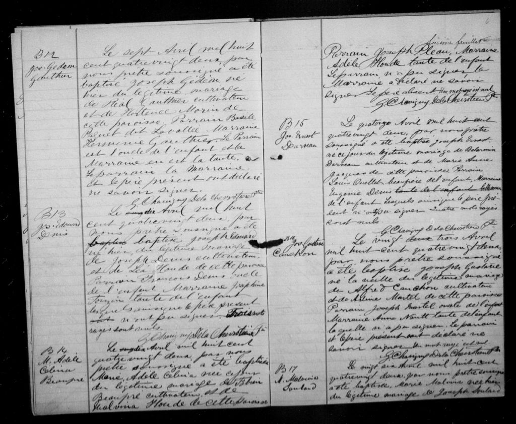 Saint-Ubald, 1871-1922, Archives nationales à Québec, Fonds Cour supérieure. District judiciaire de Québec. État civil, (03Q,CE301,S57).