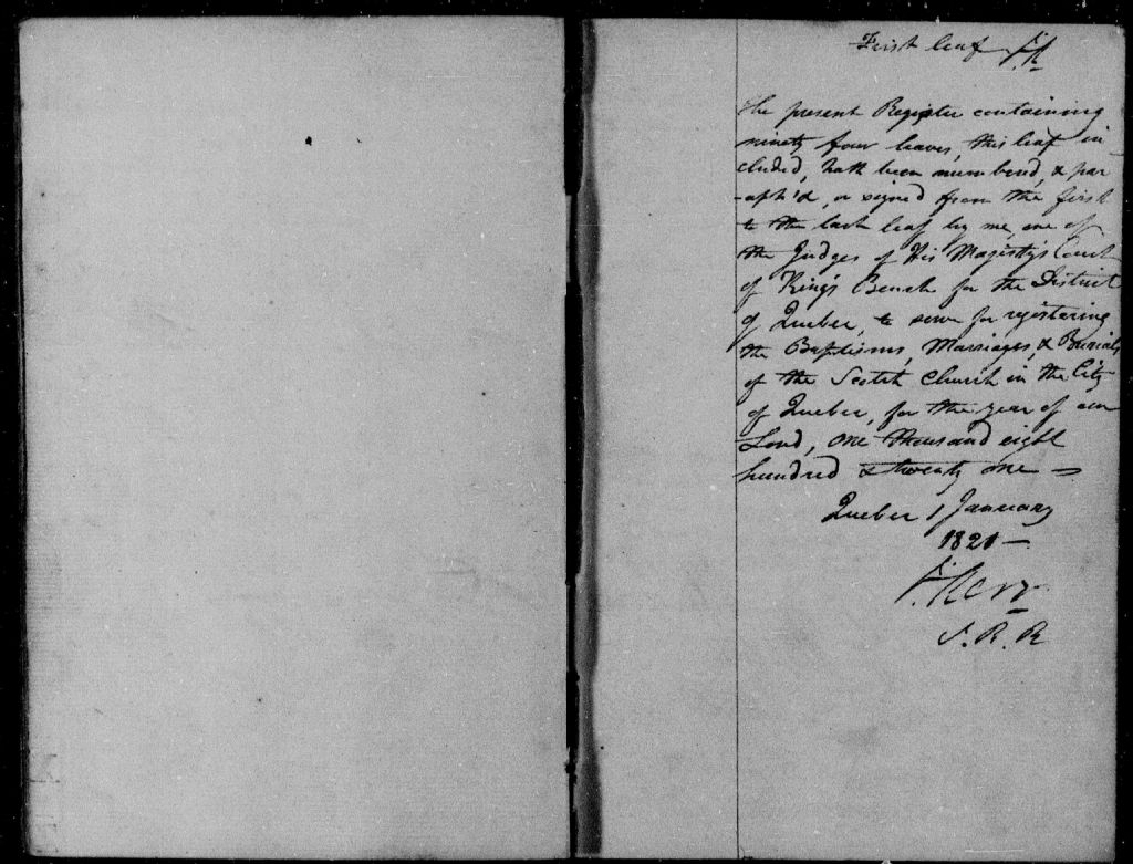 St. Andrew's Presbyterian Church of Quebec, 1770-1922, Archives nationales à Québec, Fonds Cour supérieure. District judiciaire de Québec. État civil, (03Q,CE301,S66).