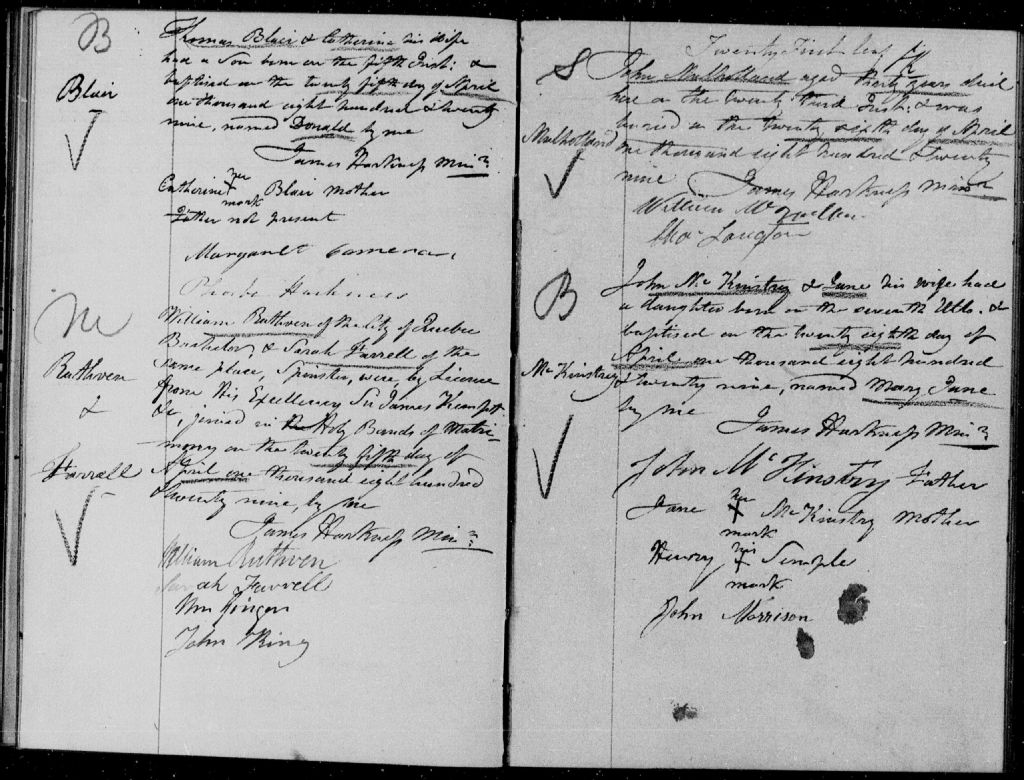 St. Andrew's Presbyterian Church of Quebec, 1770-1922, Archives nationales à Québec, Fonds Cour supérieure. District judiciaire de Québec. État civil, (03Q,CE301,S66).