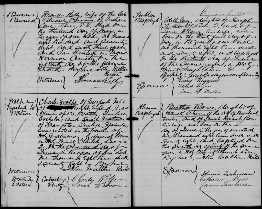 Holy Trinity Anglican Church of Lévis, 1827-1922, Archives nationales à Québec, Fonds Cour supérieure. District judiciaire de Québec. État civil, (03Q,CE301,S75).