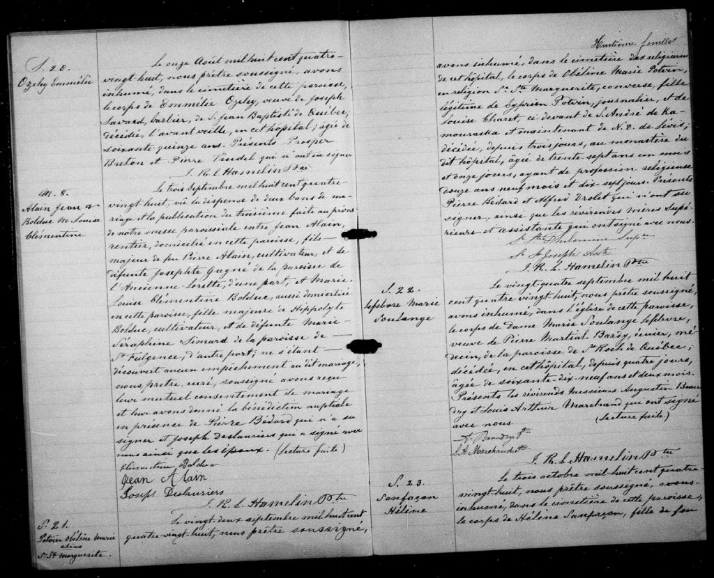 Hôpital Général de Québec et paroisse Notre-Dame-des-Anges, 1728-1922, Archives nationales à Québec, Fonds Cour supérieure. District judiciaire de Québec. État civil, (03Q,CE301,S93).