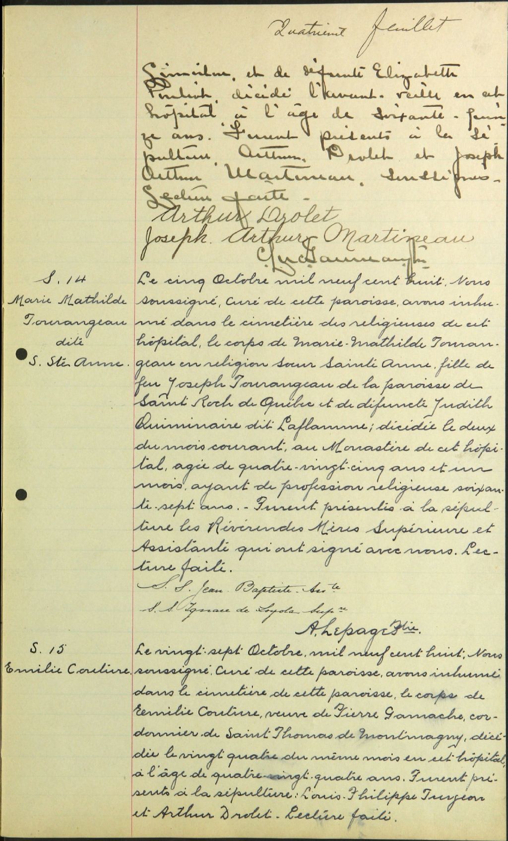 Hôpital Général de Québec et paroisse Notre-Dame-des-Anges, 1728-1922, Archives nationales à Québec, Fonds Cour supérieure. District judiciaire de Québec. État civil, (03Q,CE301,S93).