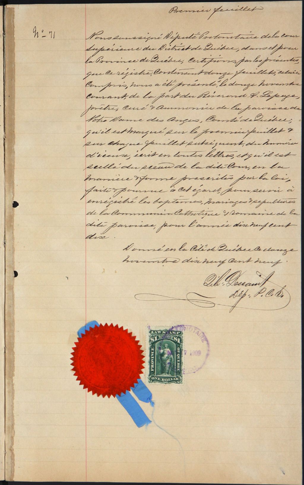 Hôpital Général de Québec et paroisse Notre-Dame-des-Anges, 1728-1922, Archives nationales à Québec, Fonds Cour supérieure. District judiciaire de Québec. État civil, (03Q,CE301,S93).