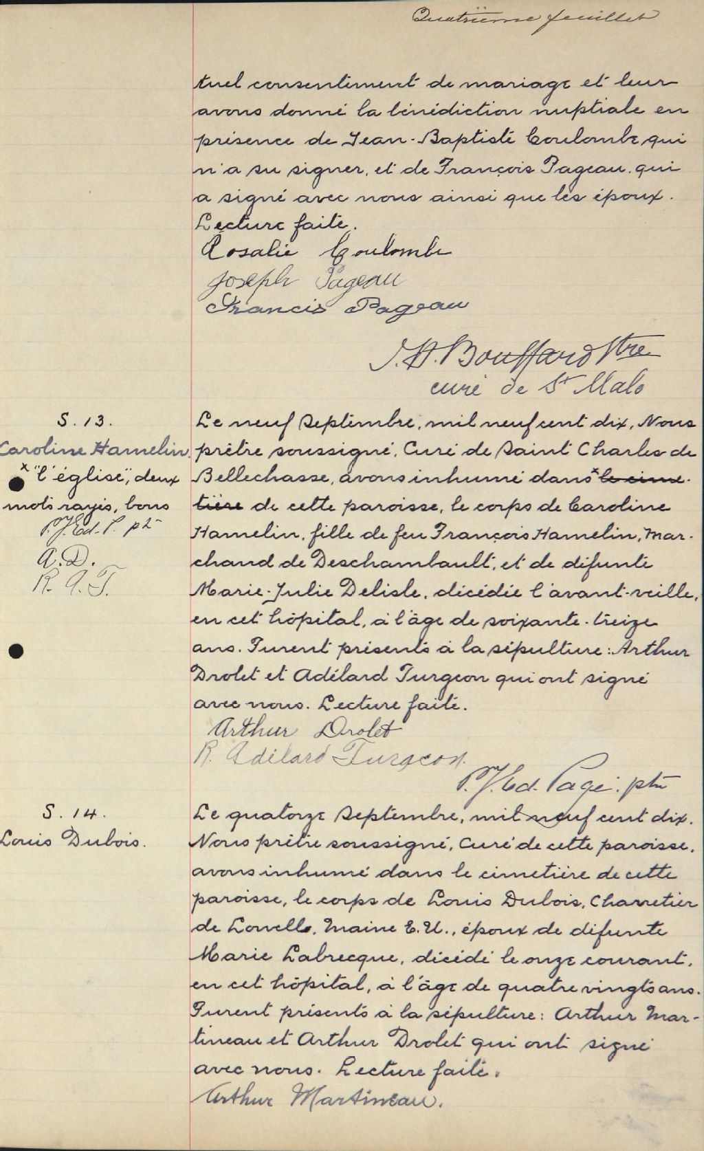 Hôpital Général de Québec et paroisse Notre-Dame-des-Anges, 1728-1922, Archives nationales à Québec, Fonds Cour supérieure. District judiciaire de Québec. État civil, (03Q,CE301,S93).