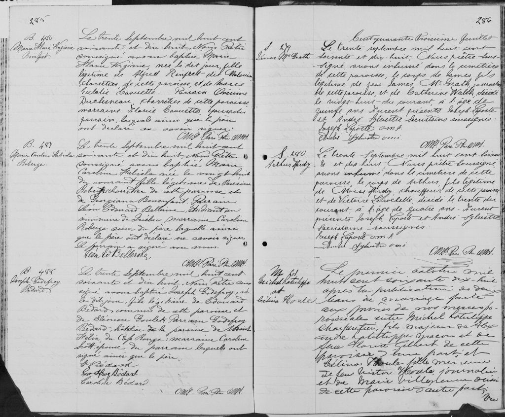 Saint-Sauveur, Québec, 1867-1922, Archives nationales à Québec, Fonds Cour supérieure. District judiciaire de Québec. État civil, (03Q,CE301,S96).