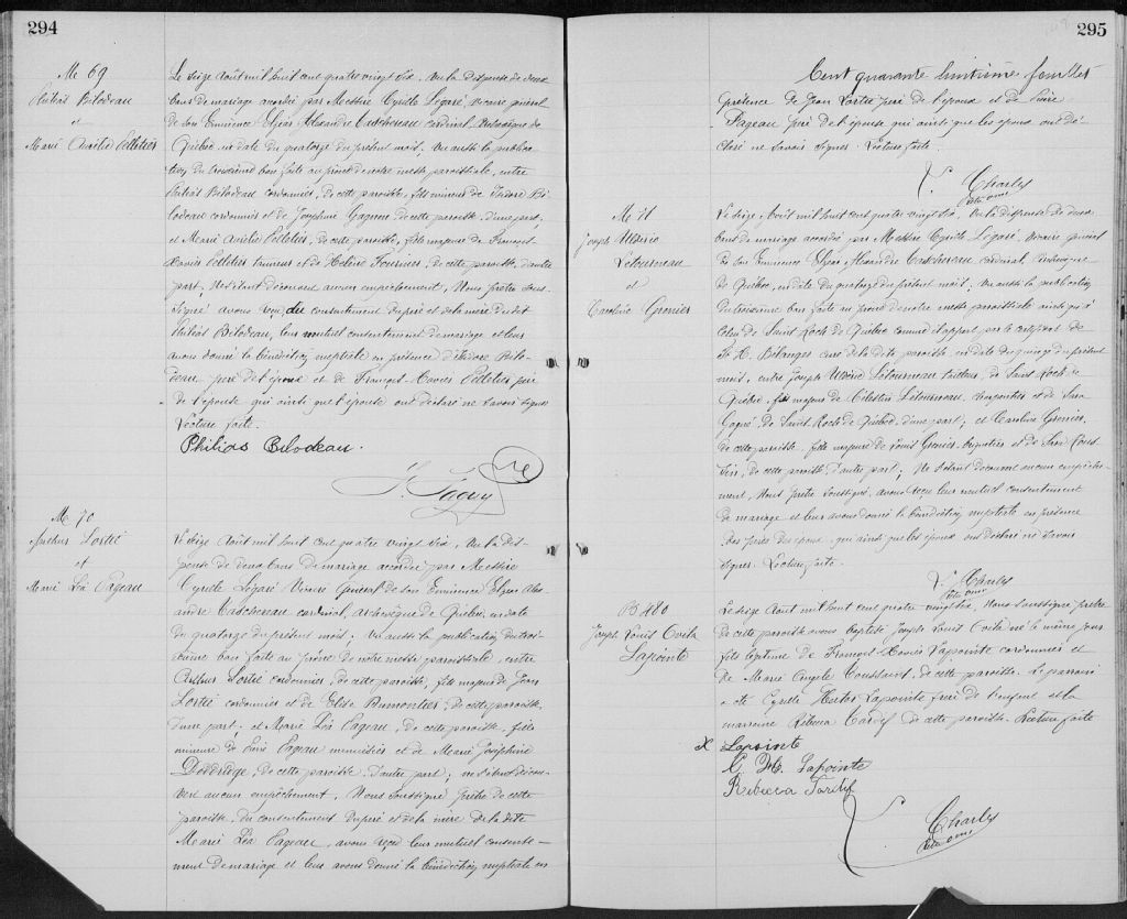 Saint-Sauveur, Québec, 1867-1922, Archives nationales à Québec, Fonds Cour supérieure. District judiciaire de Québec. État civil, (03Q,CE301,S96).