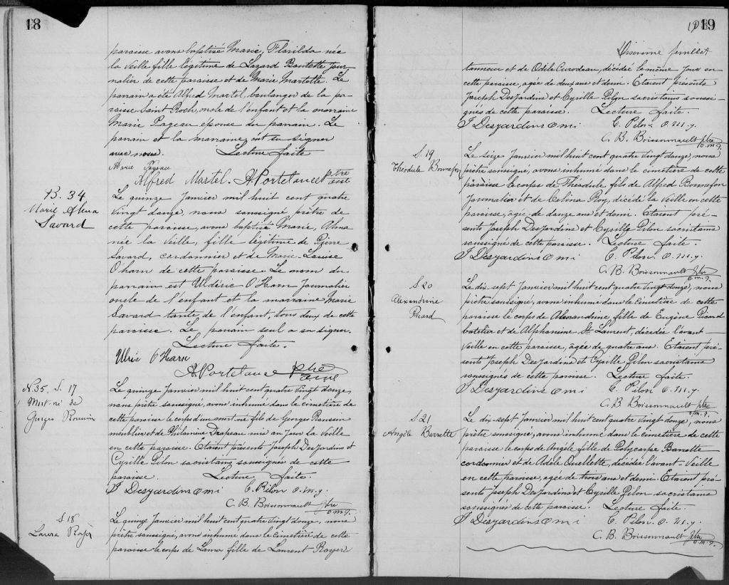 Saint-Sauveur, Québec, 1867-1922, Archives nationales à Québec, Fonds Cour supérieure. District judiciaire de Québec. État civil, (03Q,CE301,S96).