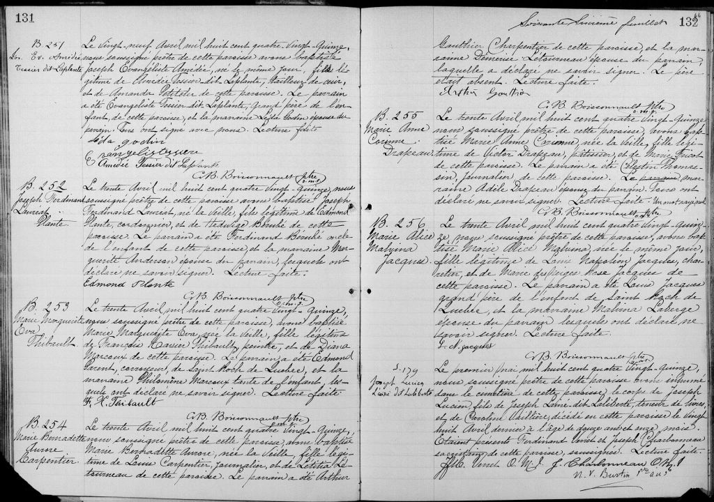 Saint-Sauveur, Québec, 1867-1922, Archives nationales à Québec, Fonds Cour supérieure. District judiciaire de Québec. État civil, (03Q,CE301,S96).