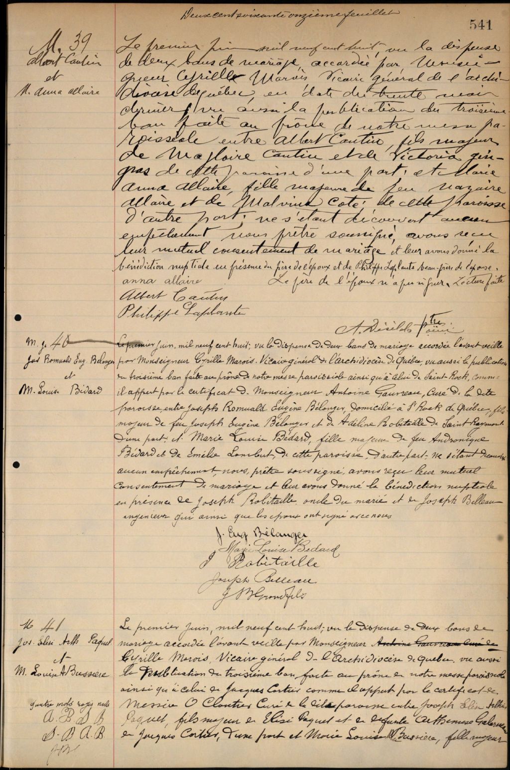 Saint-Sauveur, Québec, 1867-1922, Archives nationales à Québec, Fonds Cour supérieure. District judiciaire de Québec. État civil, (03Q,CE301,S96).