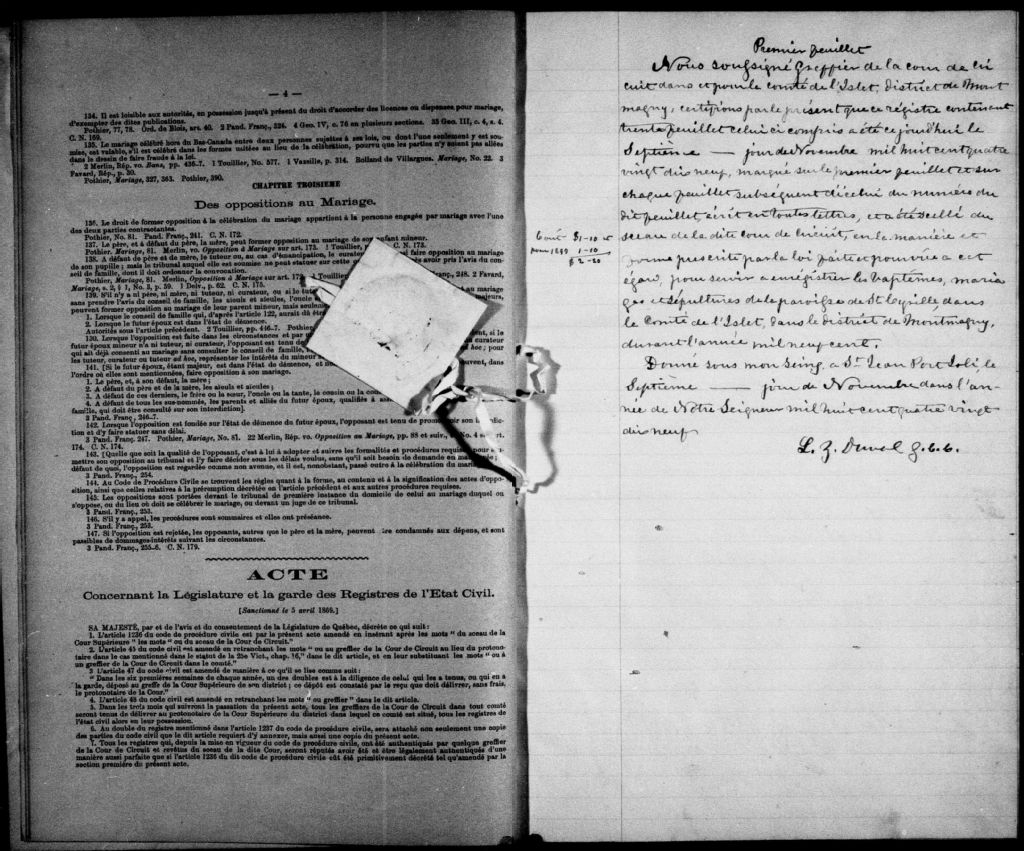 Saint-Cyrille-de-Lessard, 1865-1922, Archives nationales à Québec, Fonds Cour supérieure. District judiciaire de Montmagny. État civil, (03Q,CE302,S15).