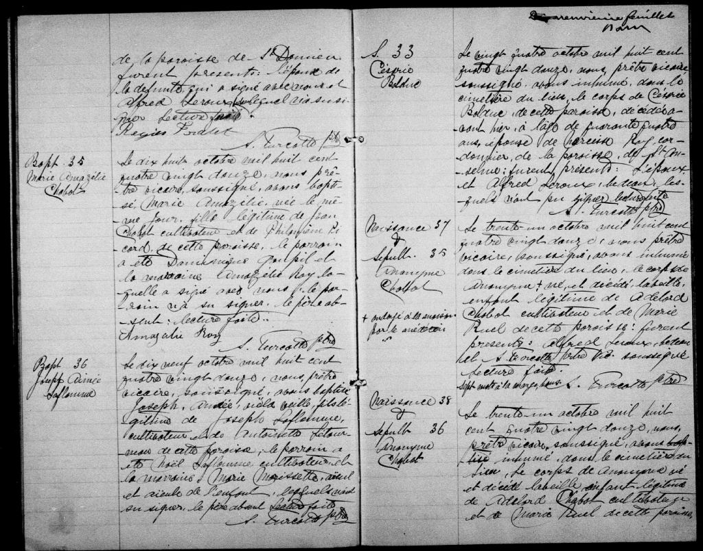Saint-Lazare, 1849-1922, Archives nationales à Québec, Fonds Cour supérieure. District judiciaire de Montmagny. État civil, (03Q,CE302,S19).