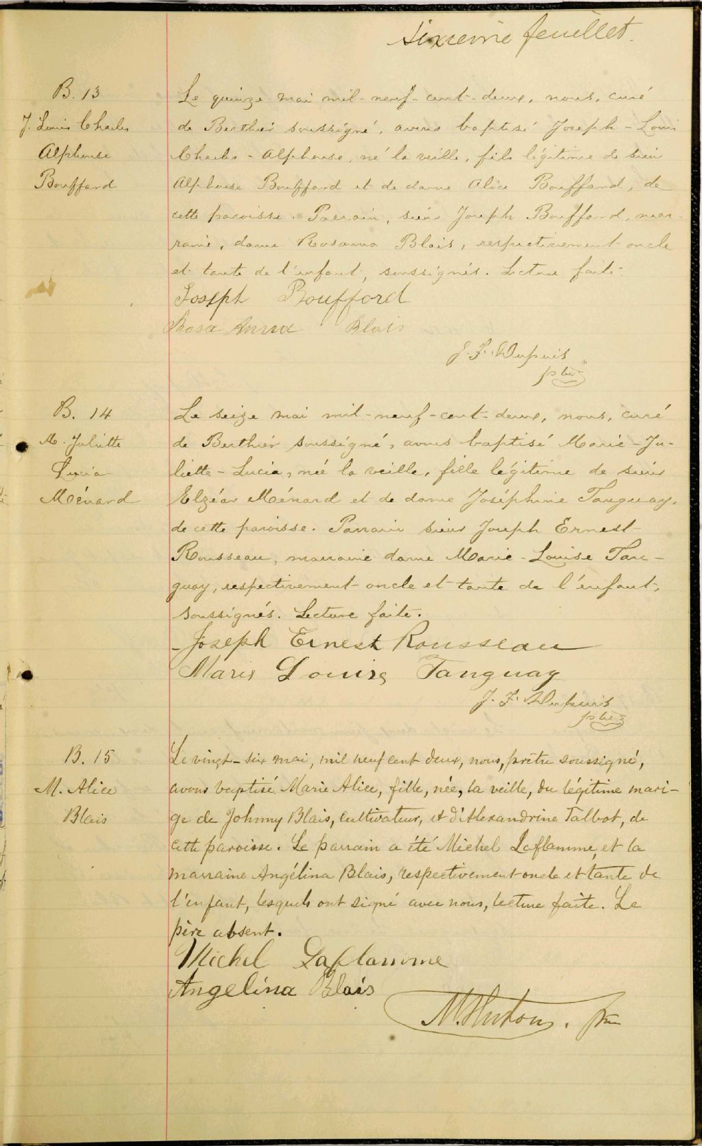 Notre-Dame-de-l'Assomption-de-Bellechasse, 1728-1922, Archives nationales à Québec, Fonds Cour supérieure. District judiciaire de Montmagny. État civil, (03Q,CE302,S2).
