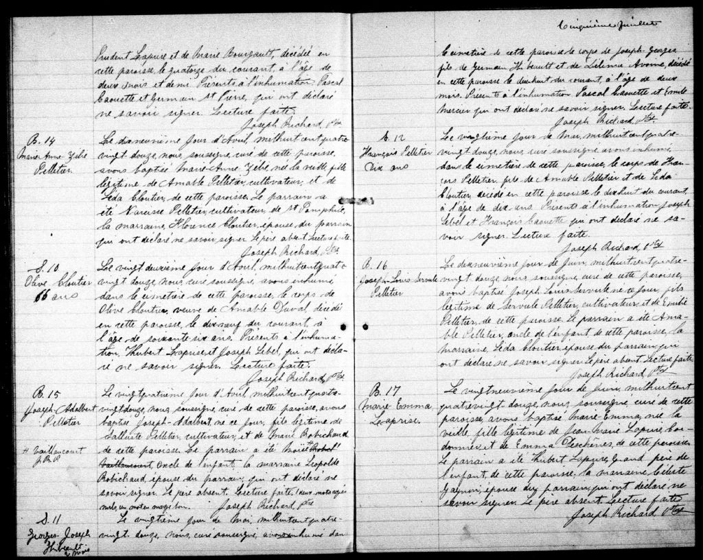 Sainte-Perpétue, 1869-1922, Archives nationales à Québec, Fonds Cour supérieure. District judiciaire de Montmagny. État civil, (03Q,CE302,S23).