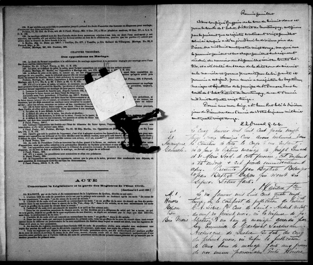 Saint-Damase-des-Aulnaies, 1889-1922, Archives nationales à Québec, Fonds Cour supérieure. District judiciaire de Montmagny. État civil, (03Q,CE302,S28).