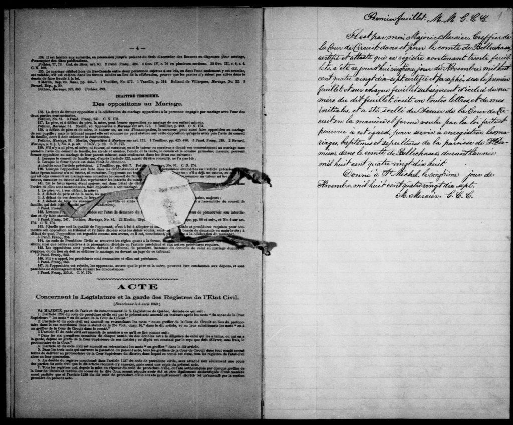 Saint-Damien-de-Buckland, 1882-1922, Archives nationales à Québec, Fonds Cour supérieure. District judiciaire de Montmagny. État civil, (03Q,CE302,S29).