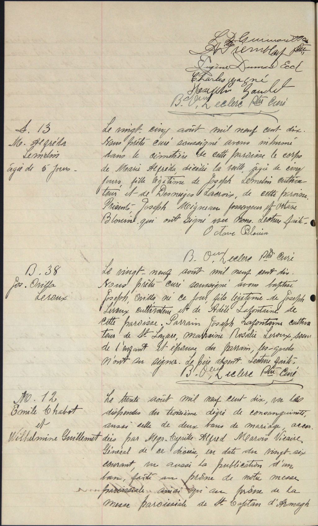Saint-Damien-de-Buckland, 1882-1922, Archives nationales à Québec, Fonds Cour supérieure. District judiciaire de Montmagny. État civil, (03Q,CE302,S29).