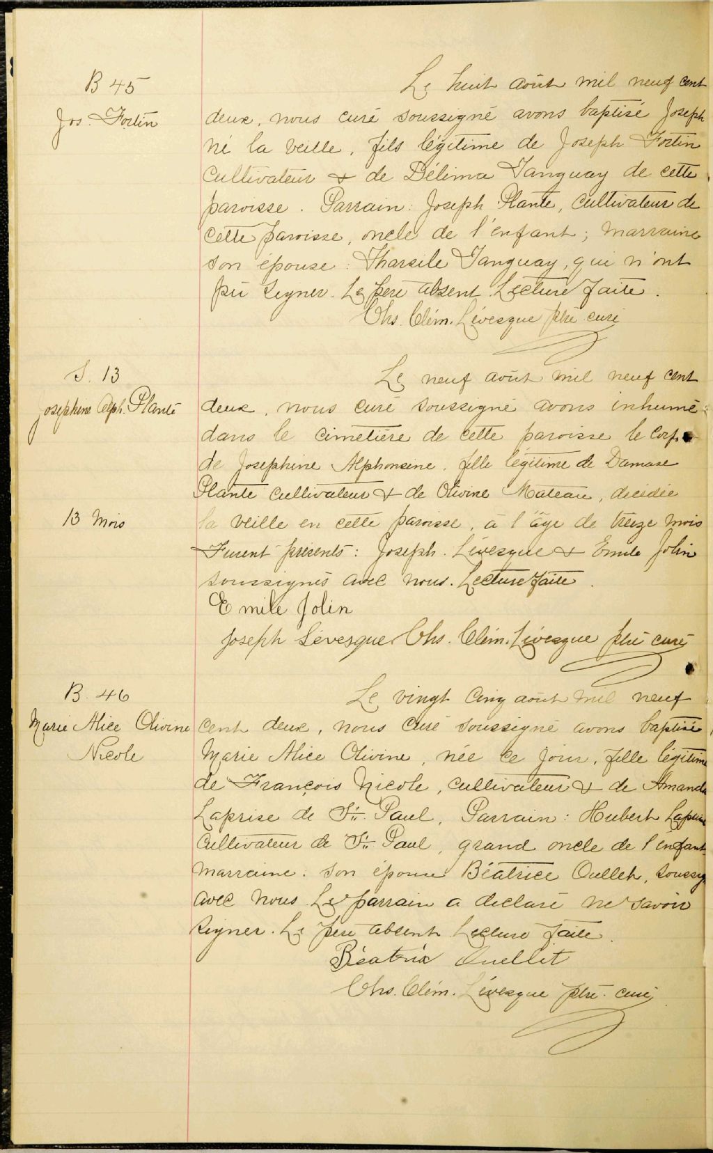 Saint-Philémon, 1886-1922, Archives nationales à Québec, Fonds Cour supérieure. District judiciaire de Montmagny. État civil, (03Q,CE302,S33).