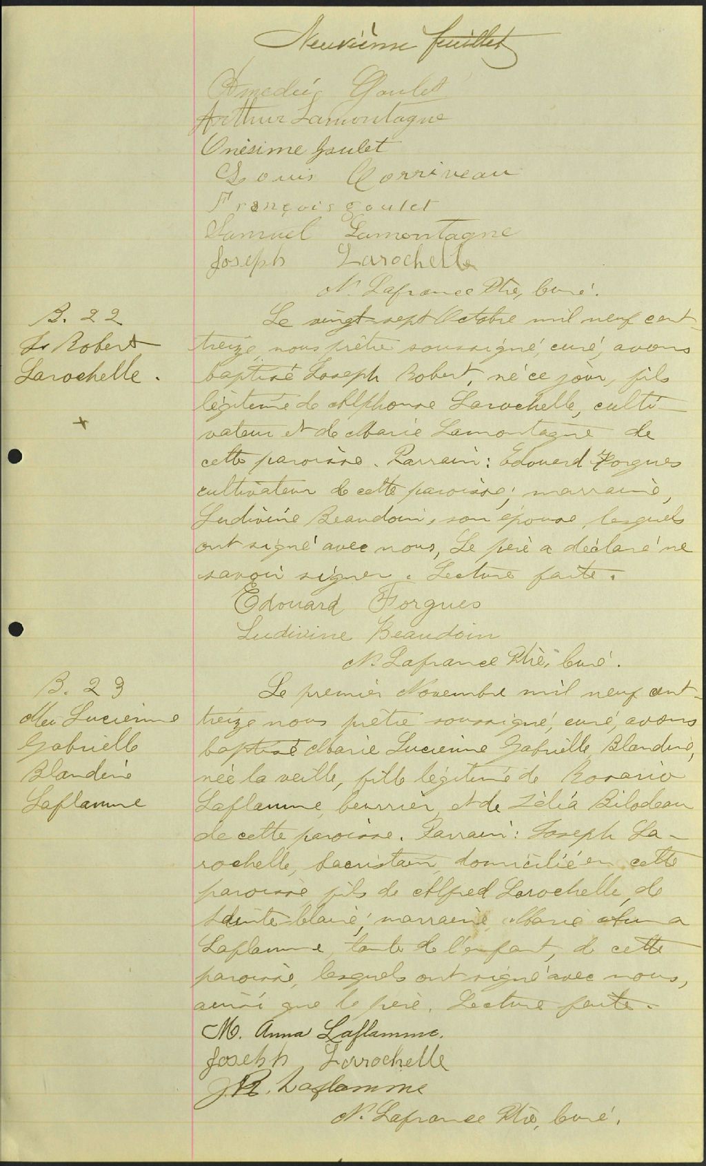 Notre-Dame-du-Bon-Conseil, 1903-1922, Archives nationales à Québec, Fonds Cour supérieure. District judiciaire de Montmagny. État civil, (03Q,CE302,S34).