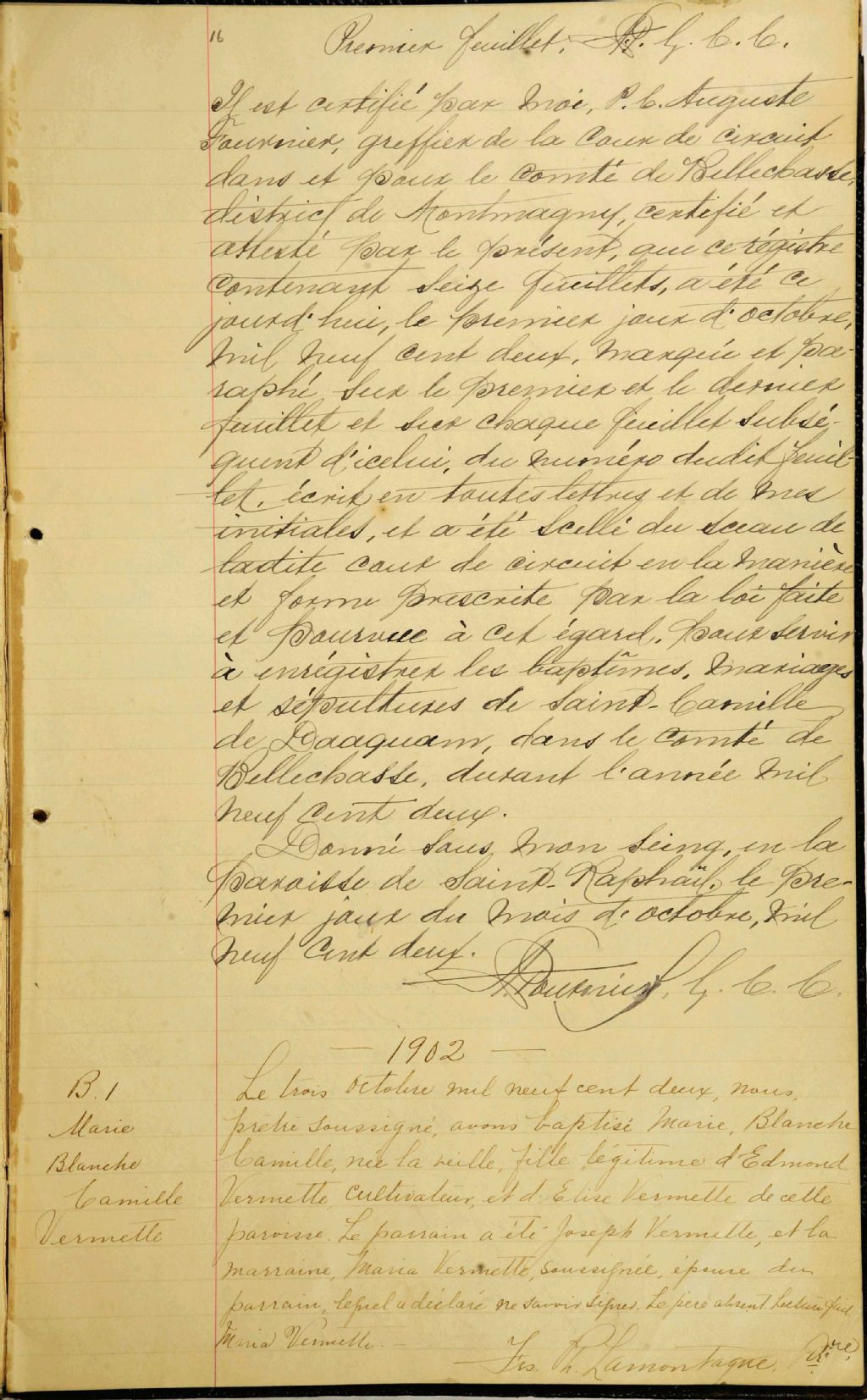 Saint-Camille-de-Lellis, 1902-1922, Archives nationales à Québec, Fonds Cour supérieure. District judiciaire de Montmagny. État civil, (03Q,CE302,S35).