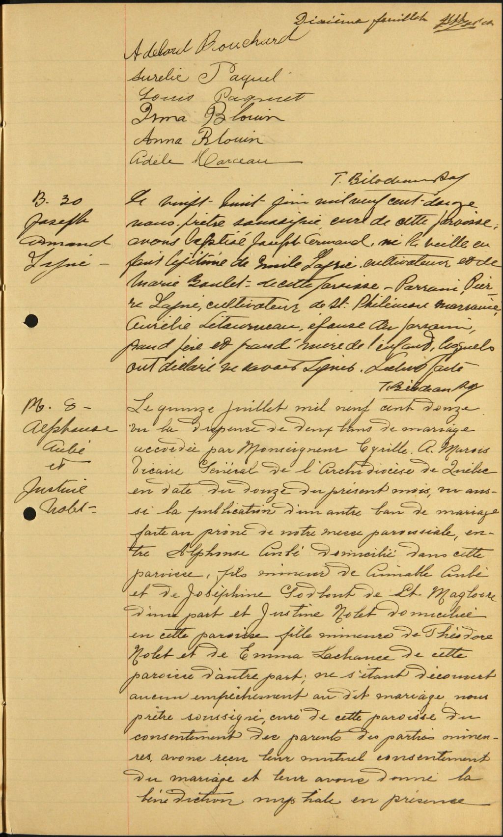 Saint-Camille-de-Lellis, 1902-1922, Archives nationales à Québec, Fonds Cour supérieure. District judiciaire de Montmagny. État civil, (03Q,CE302,S35).