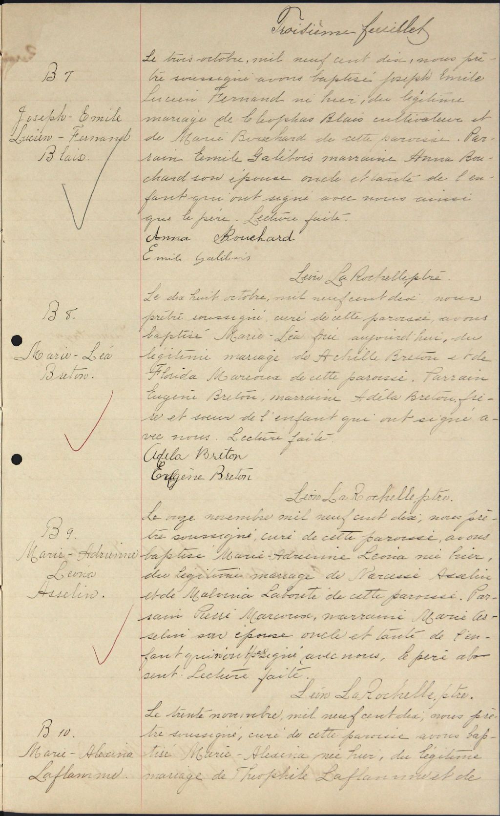 Saint-Gabriel-Archange, 1910-1922, Archives nationales à Québec, Fonds Cour supérieure. District judiciaire de Montmagny. État civil, (03Q,CE302,S43).