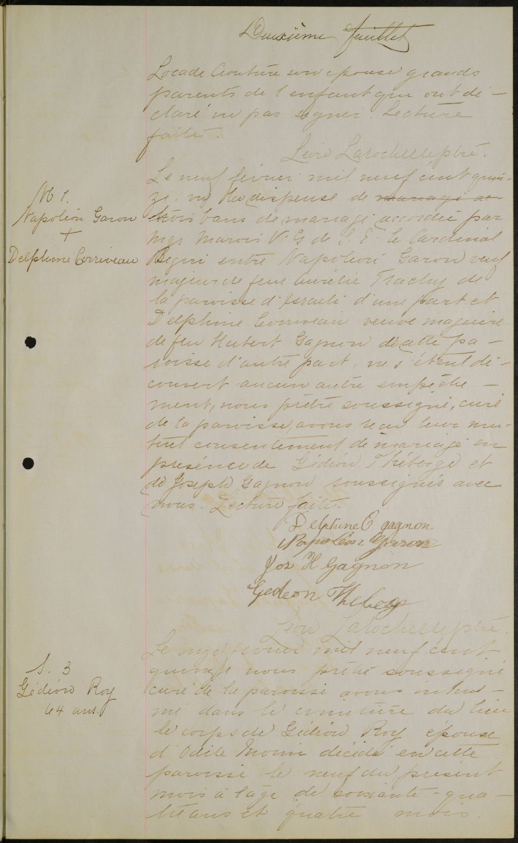 Saint-Gabriel-Archange, 1910-1922, Archives nationales à Québec, Fonds Cour supérieure. District judiciaire de Montmagny. État civil, (03Q,CE302,S43).