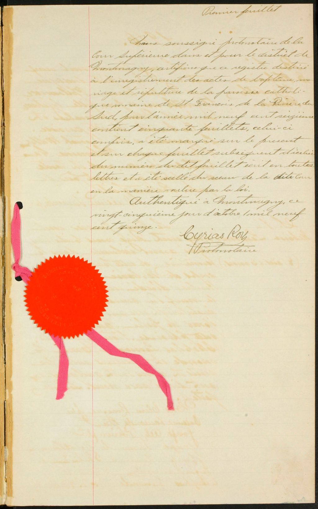 Saint-François-de-Sales-de-la-Rivière-du-Sud, 1740-1922, Archives nationales à Québec, Fonds Cour supérieure. District judiciaire de Montmagny. État civil, (03Q,CE302,S9).