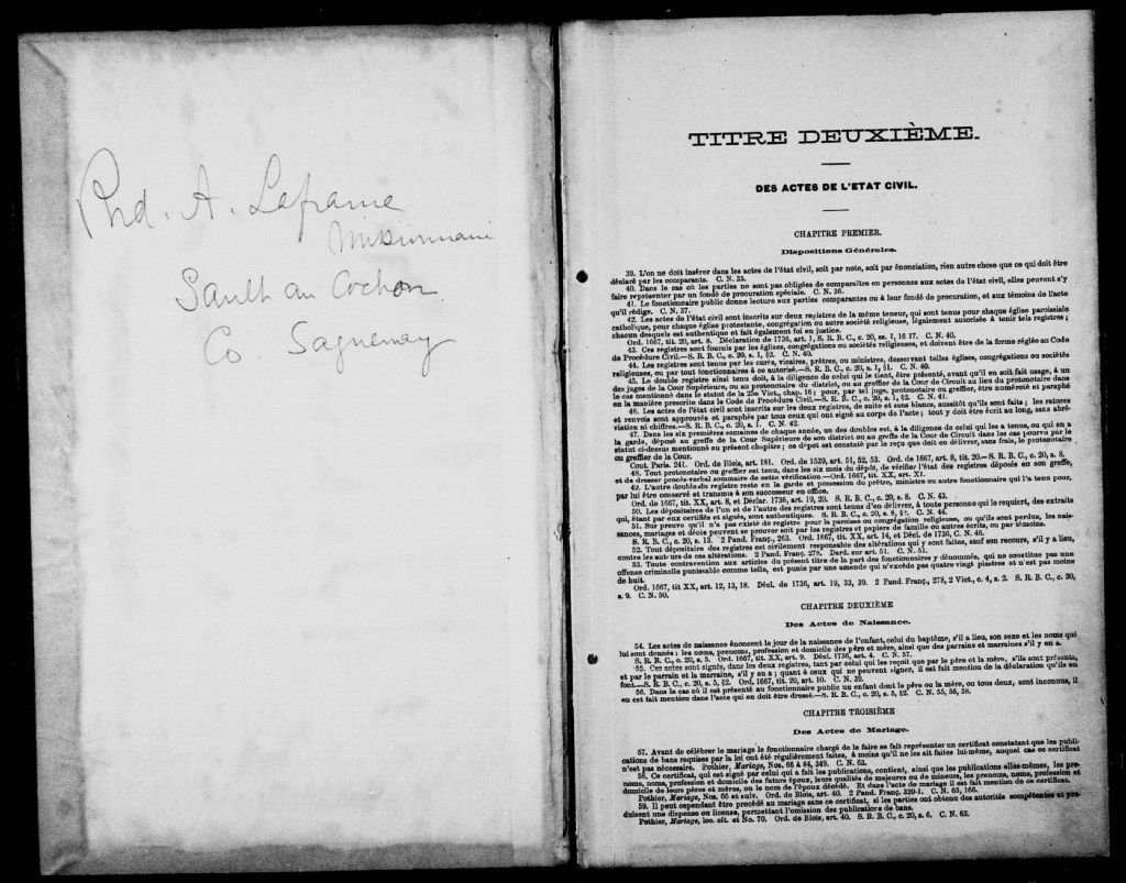 Mission Saint-Louis-du-Sault-au-Cochon, 1892-1892, Archives nationales à Québec, Fonds Cour supérieure. District judiciaire de Saguenay. État civil, (03Q,CE304,S14).