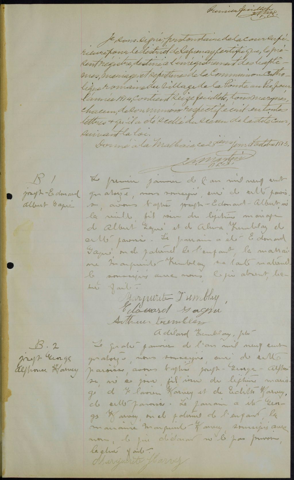 Sacré-Coeur-de-Jésus, 1912-1922, Archives nationales à Québec, Fonds Cour supérieure. District judiciaire de Saguenay. État civil, (03Q,CE304,S17).