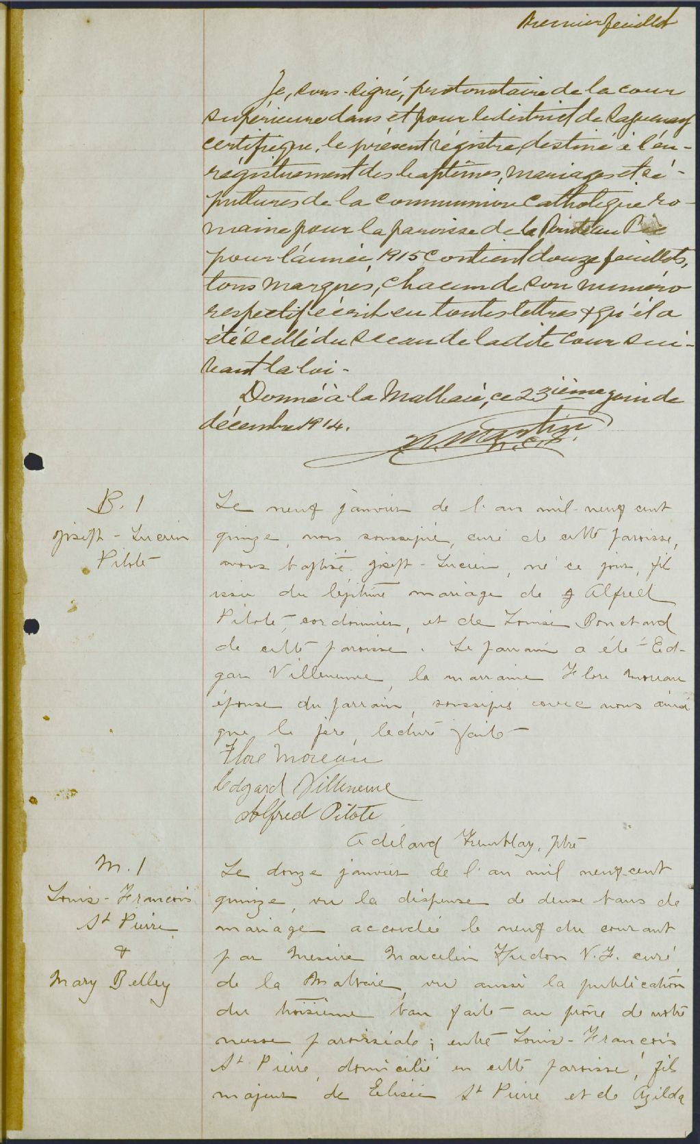 Sacré-Coeur-de-Jésus, 1912-1922, Archives nationales à Québec, Fonds Cour supérieure. District judiciaire de Saguenay. État civil, (03Q,CE304,S17).