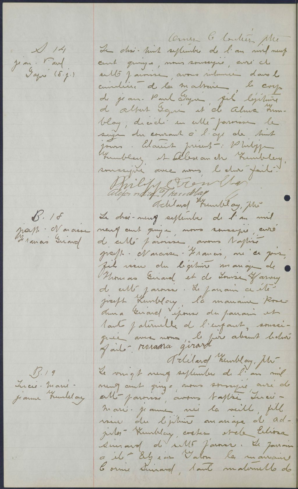 Sacré-Coeur-de-Jésus, 1912-1922, Archives nationales à Québec, Fonds Cour supérieure. District judiciaire de Saguenay. État civil, (03Q,CE304,S17).