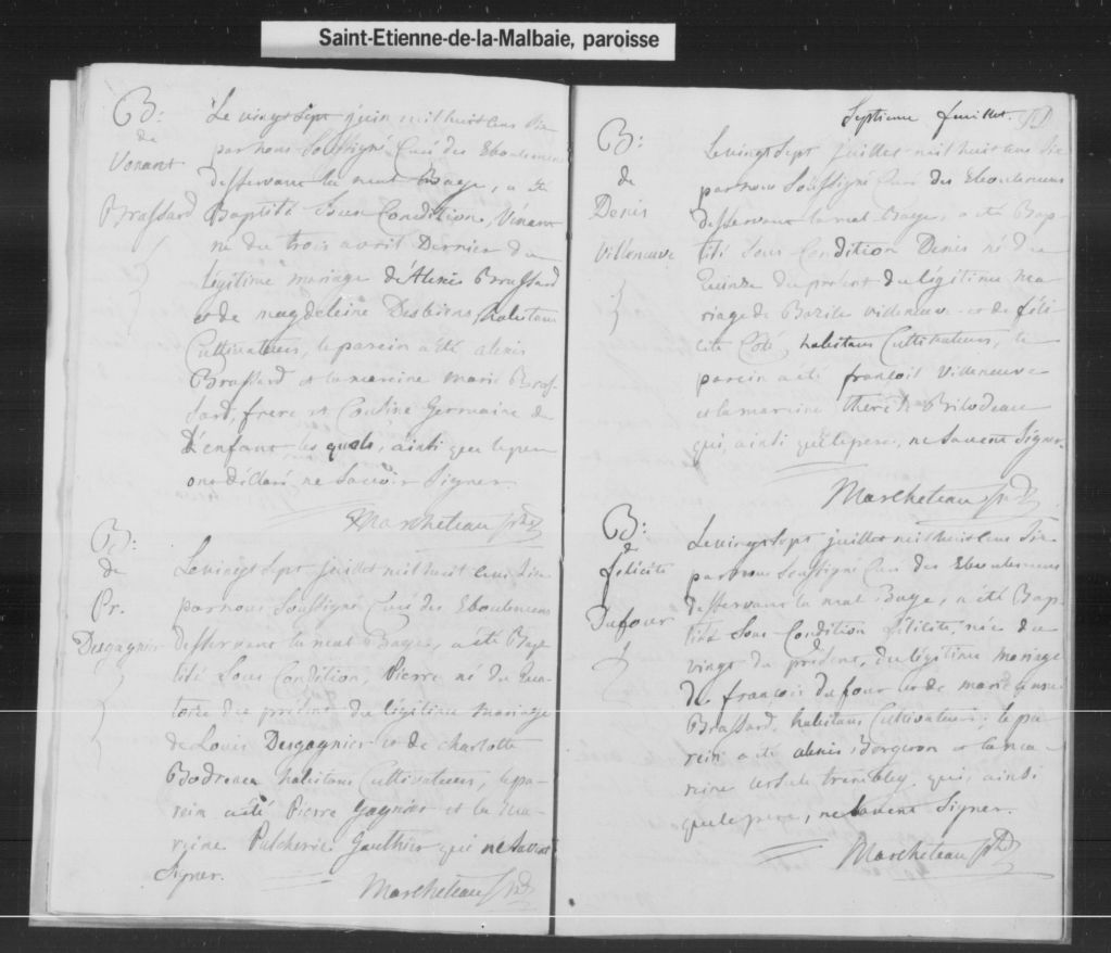 Saint-Étienne-de-La-Malbaie, 1774-1921, Archives nationales à Québec, Fonds Cour supérieure. District judiciaire de Saguenay. État civil, (03Q,CE304,S3).