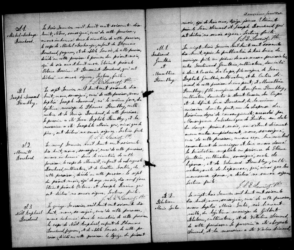 Saint-François-Xavier-de-la-Petite-Rivière, 1773-1922, Archives nationales à Québec, Fonds Cour supérieure. District judiciaire de Saguenay. État civil, (03Q,CE304,S5).