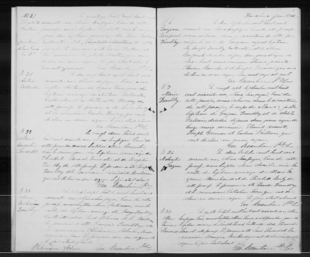 Saint-Fidèle-de-Mount-Murray, 1855-1922, Archives nationales à Québec, Fonds Cour supérieure. District judiciaire de Saguenay. État civil, (03Q,CE304,S7).