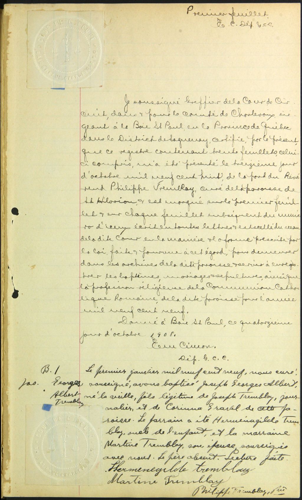 Saint-Hilarion-de-Settrington, 1864-1922, Archives nationales à Québec, Fonds Cour supérieure. District judiciaire de Saguenay. État civil, (03Q,CE304,S8).