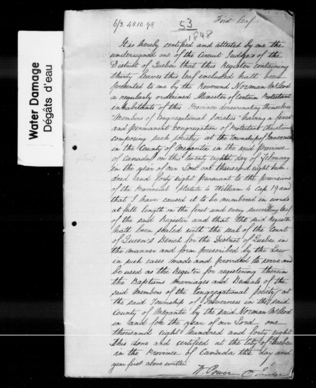Inverness Congregational Church, 1848-1884, Archives nationales à Québec, Fonds Cour supérieure. District judiciaire d'Arthabaska. État civil, (03Q,CE305,S11).