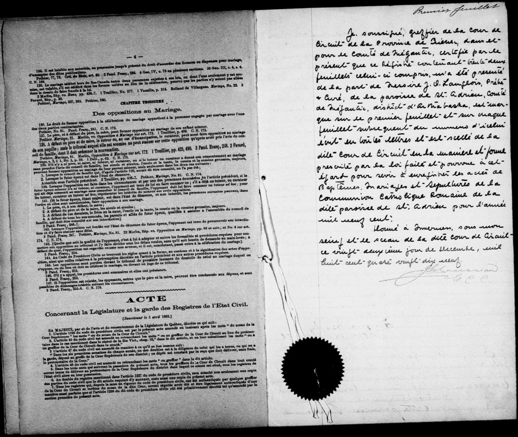Saint-Adrien-d'Irlande, 1879-1922, Archives nationales à Québec, Fonds Cour supérieure. District judiciaire d'Arthabaska. État civil, (03Q,CE305,S18).