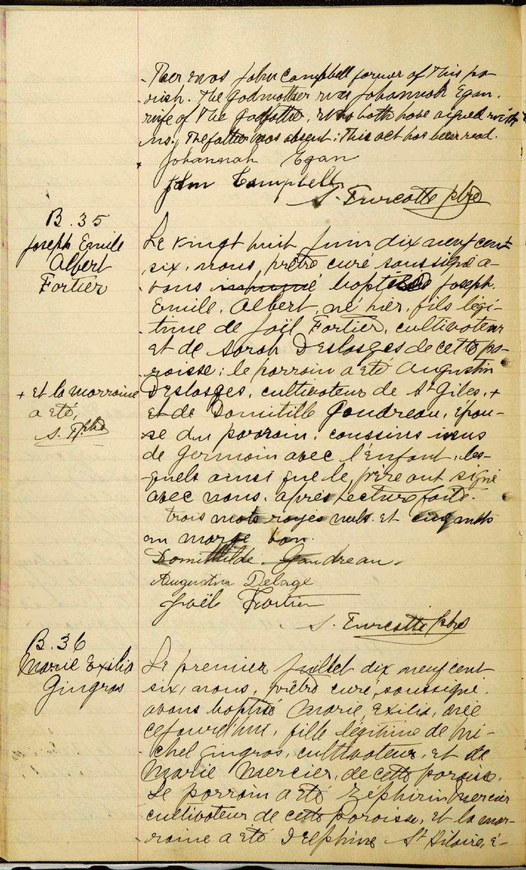 Sainte-Agathe, 1857-1922, Archives nationales à Québec, Fonds Cour supérieure. District judiciaire d'Arthabaska. État civil, (03Q,CE305,S2).