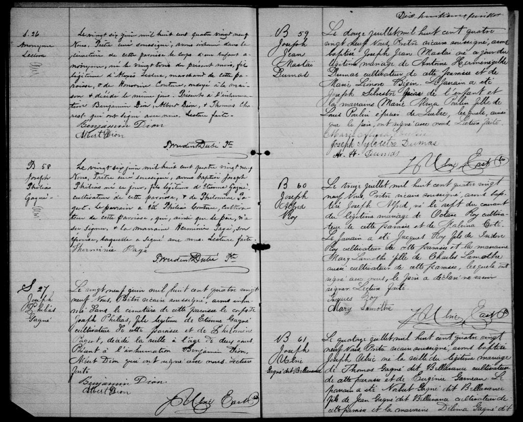 Sainte-Julie-de-Somerset, 1854-1922, Archives nationales à Québec, Fonds Cour supérieure. District judiciaire d'Arthabaska. État civil, (03Q,CE305,S22).