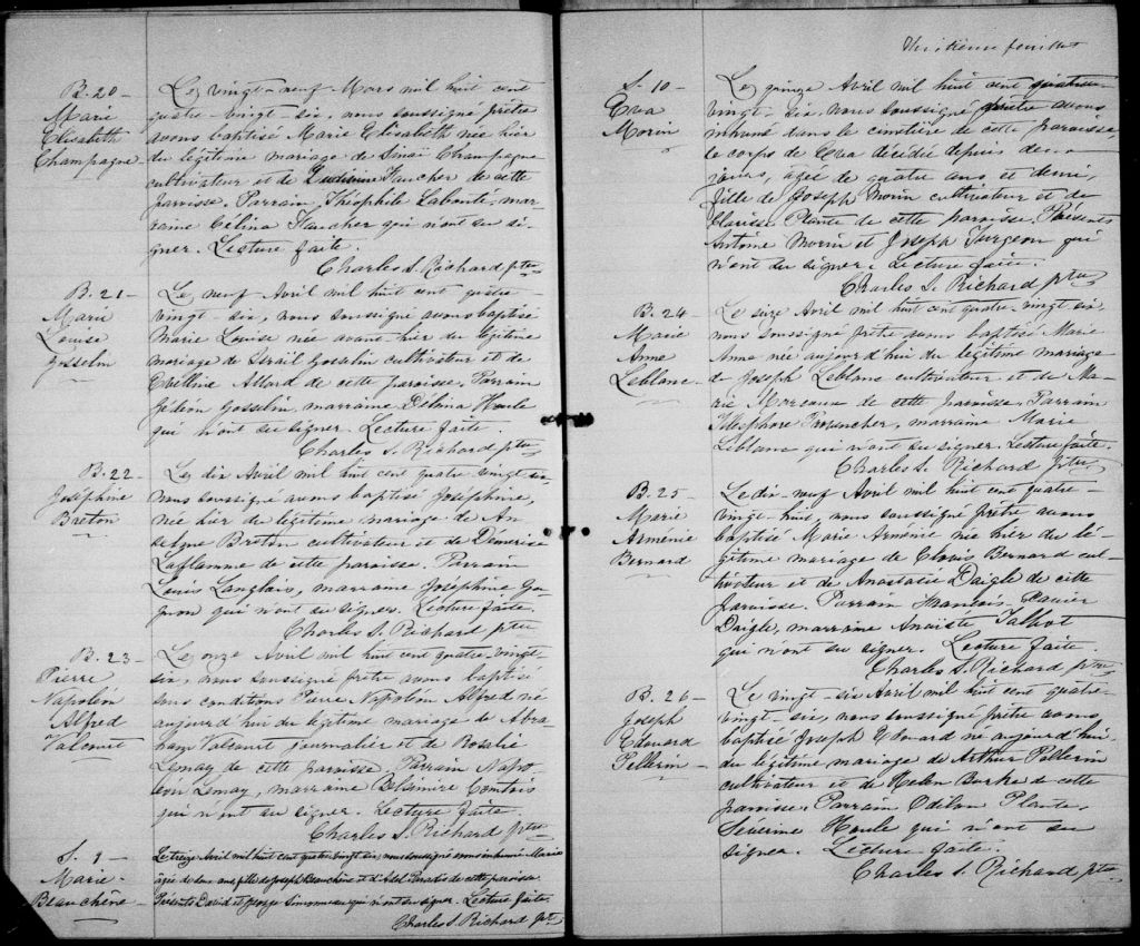 Sainte-Sophie-d'Halifax, 1855-1922, Archives nationales à Québec, Fonds Cour supérieure. District judiciaire d'Arthabaska. État civil, (03Q,CE305,S24).