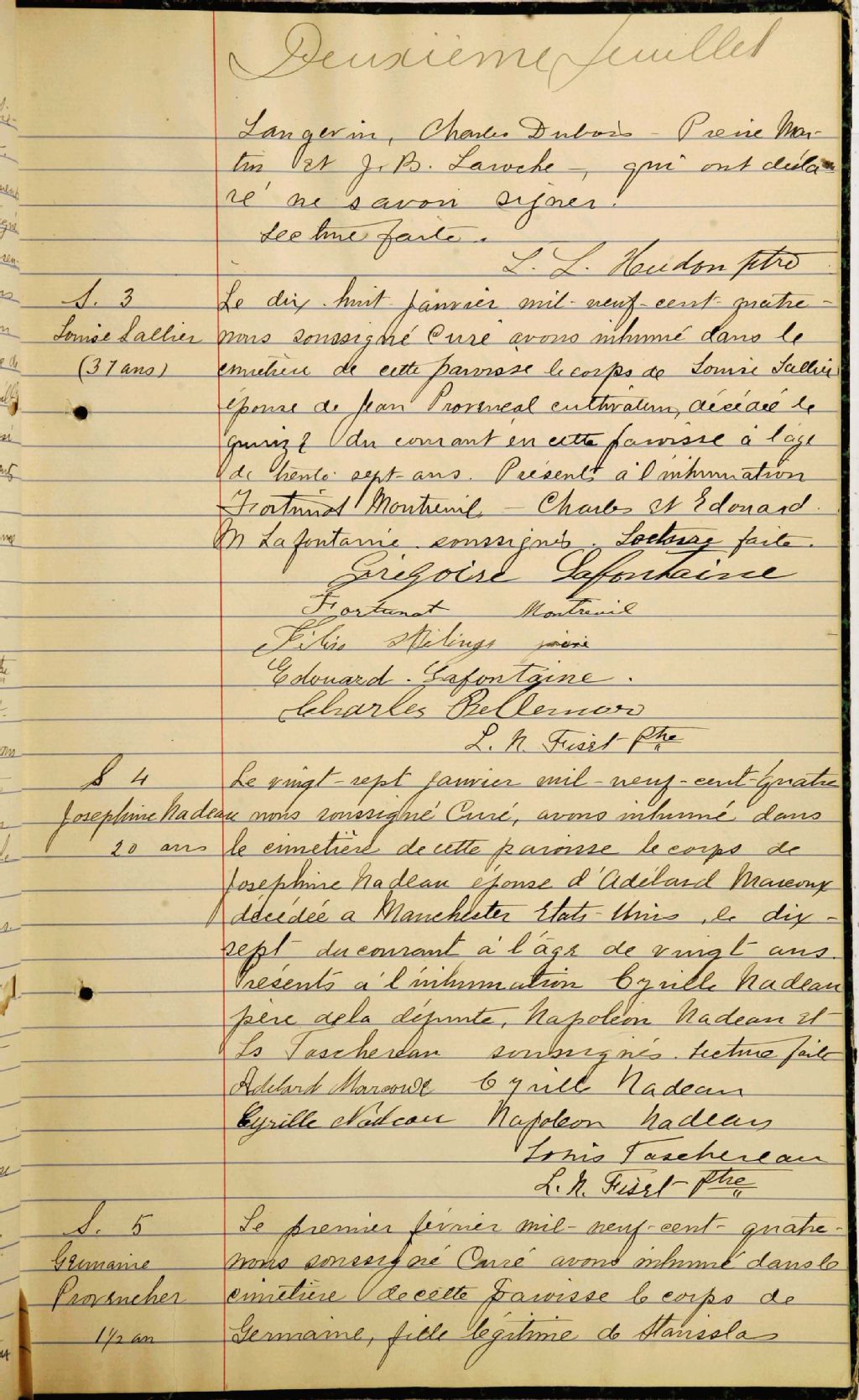 Notre-Dame-de-Lourdes, 1893-1922, Archives nationales à Québec, Fonds Cour supérieure. District judiciaire d'Arthabaska. État civil, (03Q,CE305,S34).