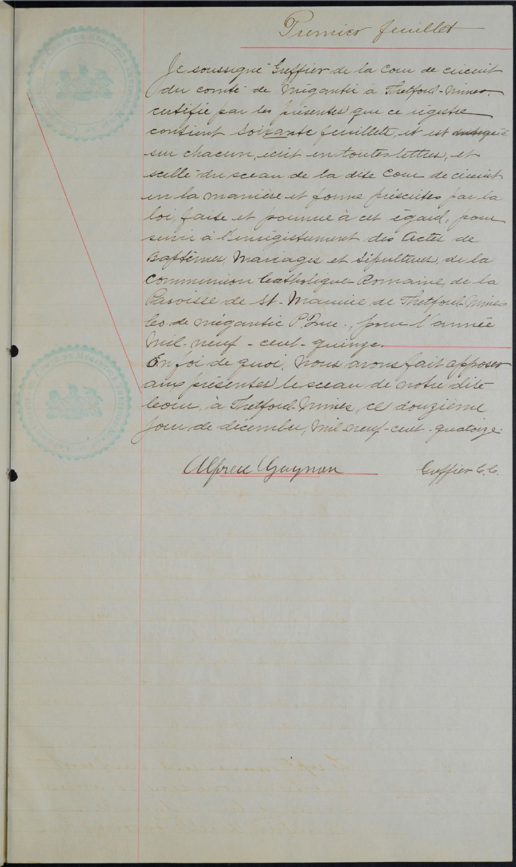 Saint-Maurice-de-Thetford, 1906-1922, Archives nationales à Québec, Fonds Cour supérieure. District judiciaire d'Arthabaska. État civil, (03Q,CE305,S36).