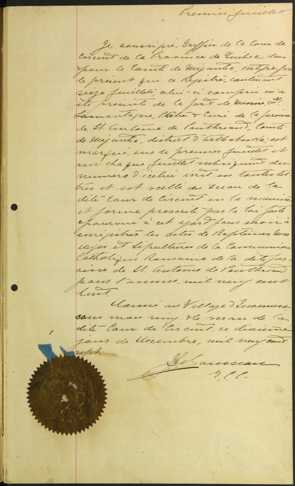 Saint-Antoine-de-Pontbriand, 1898-1922, Archives nationales à Québec, Fonds Cour supérieure. District judiciaire d'Arthabaska. État civil, (03Q,CE305,S38).