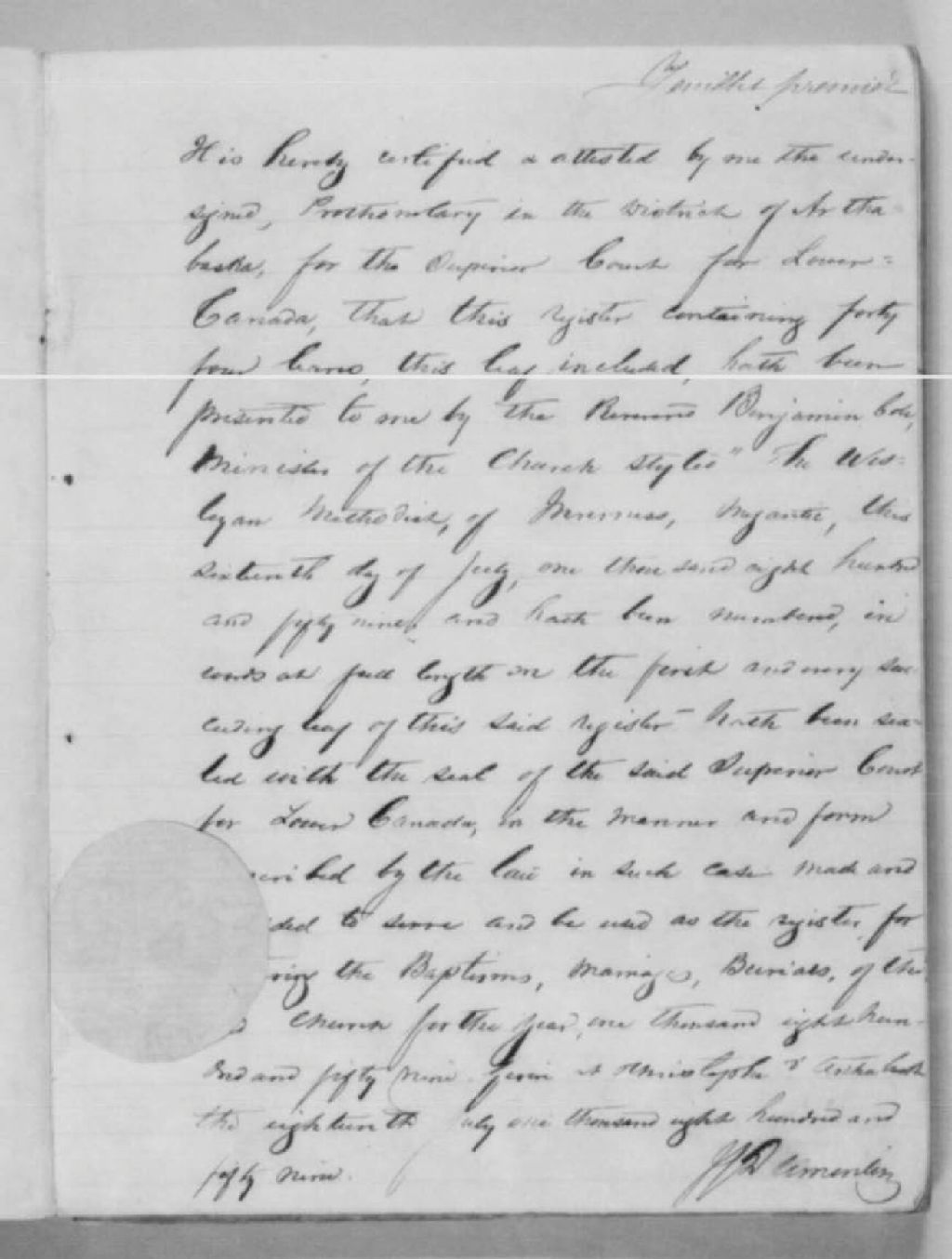 Inverness Methodist Church, 1859-1922, Archives nationales à Québec, Fonds Cour supérieure. District judiciaire d'Arthabaska. État civil, (03Q,CE305,S7).