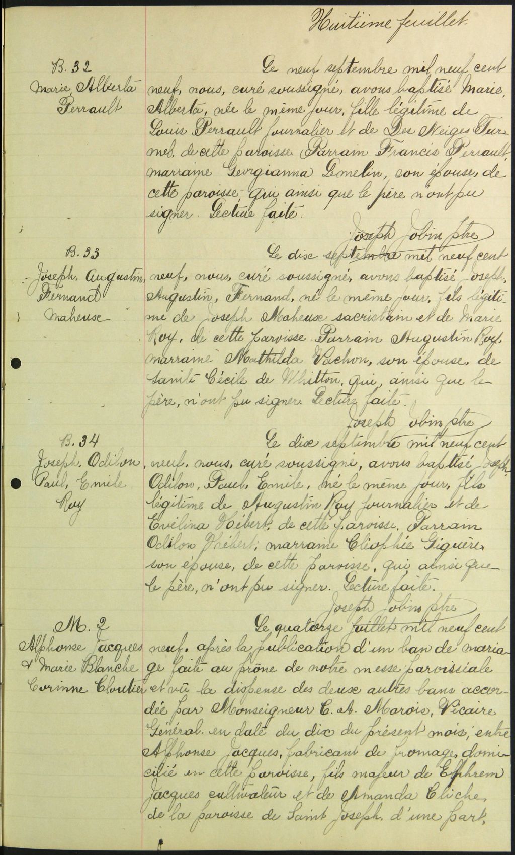 L'Enfant-Jésus, 1899-1922, Archives nationales à Québec, Fonds Cour supérieure. District judiciaire de Beauce. État civil, (03Q,CE306,S1).