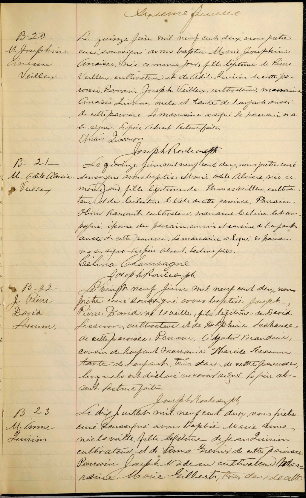 Saint-Gédéon-de-Beauce, 1899-1922, Archives nationales à Québec, Fonds Cour supérieure. District judiciaire de Beauce. État civil, (03Q,CE306,S13).